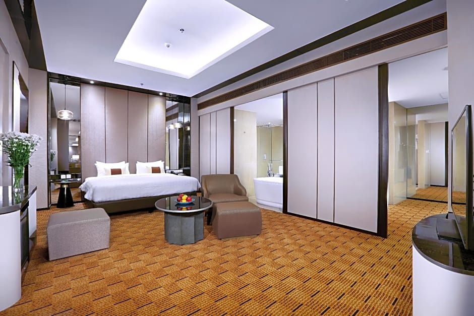 Guests will have a special experience as this suite features a pool with a view. Featuring a private entrance, this air-conditioned suite is consisted of of 1 living room, 1 separate bedroom and 1 bathroom with a walk-in shower and a bath. The spacious suite offers a flat-screen TV with satellite channels, a mini-bar, a tea and coffee maker, executive lounge access as well as city views. The unit offers 2 beds.